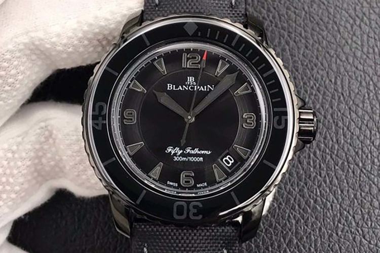 特别还需要填充好圈口上的夜光图层,这也是为什么ZF厂宝珀五十寻在好几年之内都一直名列前茅的原因。选用大型的两层密封表冠,提高腕表的防水性,全黑精钢磨砂处理之后,呈现出绝佳视觉感受,精美绝伦。