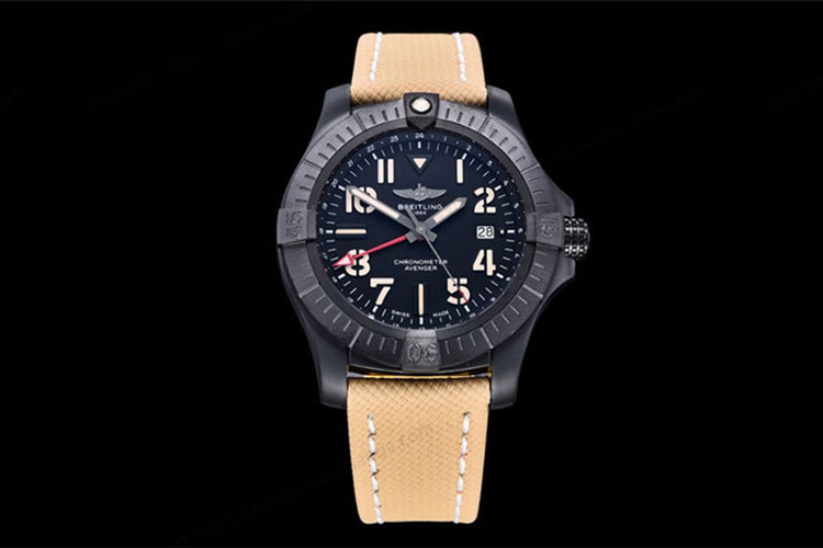 GF厂百年灵复仇者夜间任务版复刻腕表表径尺寸为:45毫米;完美展示出大尺寸腕表的豪气与奔放。坚固性和抗震性优异。将出众的精确性和强劲设计纳入一枚采用坚固的类金刚石(DLC)涂层钛金属表壳内。表壳采用原装一致的钛金属材质打造而成。壳身拉丝整洁细腻。线条流畅。45毫米的表盘搭配无比坚固的精钢表壳。