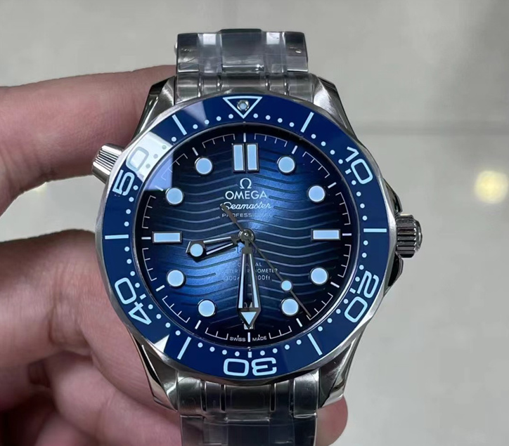 大家好,这期测给大家介绍的是VS厂欧米茄新推出的海马300米75周年的特别版,非常趁看的渐变冰蓝色,然后这次欧米茄75周年一共有推出8款,就比较经典的海马系列,然后VS厂前面已经有推出过世界时,包括海马150还有海王,然后现在又推出了这个海马300的冰蓝面,颜值确实非常高。
