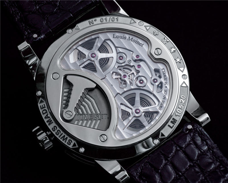 所有者兼创意总监Jean-Marie Schaller在评论此次发布时表示,“未来的制表就是挑战传统,探索惊人的视野,并将情感联系作为概念的关键部分。Astronef Techno是我自己对未来的愿景。它将古老的制表传统与我们这个时代的创造力完美融合。总之,这款表表代表了对创新的持续追求。”为腕表提供动力的是Caliber LM 105,这是一款手动上弦机芯,配有两个弹簧筒(每个陀飞轮一个),可提供48小时的动力储备。表冠的位置不再决定它是处于时间设置还是卷绕模式;相反,表壳背面的蓝宝石水晶窗口旁边集成了一个选择器,用于显示机芯。机芯以每小时21600次振动的速度运行,包括16个陶瓷滚珠轴承和54颗红宝石。根据Louis Moinet的说法,Caliber LM 105的研制耗时三年。