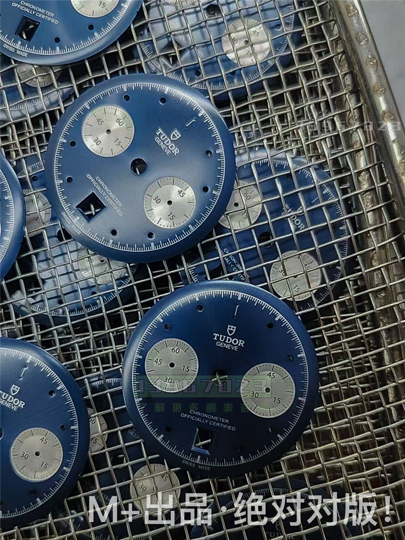 首先看一下它的一个日历M+厂这个日历它是有一个独家的技术,它的每一个日历每一天做的都是非常正的,然后跟这个原装都是一样大小,包括日历窗,还有它的一个指针做的都是非常干净的,也是比较正的。还有它字面上的一个字体印刷,都是这种油压的印刷,包括三个小表盘,它里面就是凹下去那一部分也是跟原装一样,有这种CD纹的,这个肉眼很难看出来,然后我们再来看一下它的一个镜面,这个镜面M+跟原装也是做的这个高度都是完全一样的,包括这个圆弧,都是对版的。