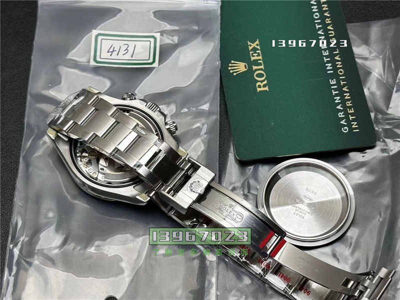 虽然它是密底的表款,但是机芯的做工是非常不错的。两条快慢桩全部在上方,这个就是一个丹东的一个4131机芯,这一款机芯的稳定性是特别强的,非常的亮,包括它这个里边的滚珠,它这个滚珠全部都是一个装满的,和原版是一模一样的,非细节是非常到位的。整体的称一个克重是144克的一个克重。因为它这一款原版的话,它也是一个904钢的,所以它这个重量的话和原版的基本上是不相上下的一个重量。