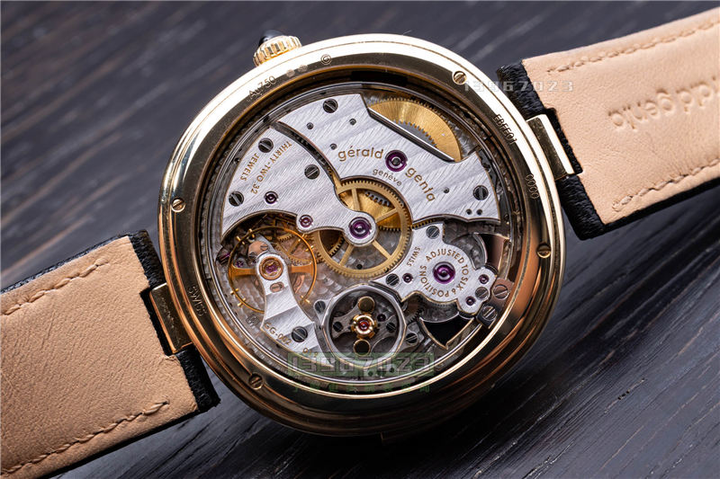 当然,Genta 过去也制作过枕形手表,但与我见过的许多复古款式相比,这一版本感觉更现代,也不那么华丽。它的厚度仅为 9.6 毫米,对于三问报时表来说,纤薄得令人印象深刻,据 LFdT 称,这种形状既是出于声学考虑,也是出于美学考虑。例如,Gérald Genta 三问报时表壳的内部在结构上尽可能地挖空(最薄处仅为 0.6 毫米),以减少声音衰减。Hegi 还解释说,选择 3N 金的暖色调是为了唤起“阳光和地中海精神,这非常符合 Genta 的风格”。这也是一个实用的选择,因为众所周知,黄金可以增强报时机制的共振。