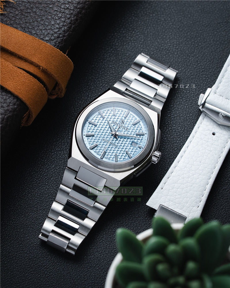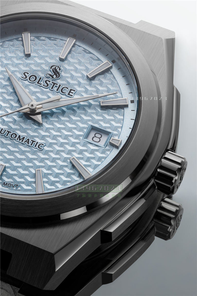 其表盘由相互交错的立方体构成,构成了立体马赛克图案,是腕表的核心——雕塑般的表面仿佛随着手腕的每一次摆动而变换。图案巧妙地运用光影,令人联想起品牌的同名现象:夏至时太阳位置的变化。这款表盘的设计不仅是为了显示时间,更是为了体现时间。