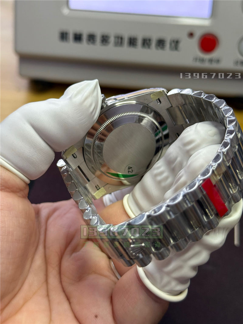 然后唯一的一点缺点就是现在表带没有做配重,它的重量跟原装比的话稍微还要欠缺一点,但是整体来说细节是已经非常不错了。如果不是要求重量一定要达到原装那么重的话,这个版本是非常不错的。因为特别重的话,有一些人带着他还觉得不舒服。这个就是表头有做配重了。