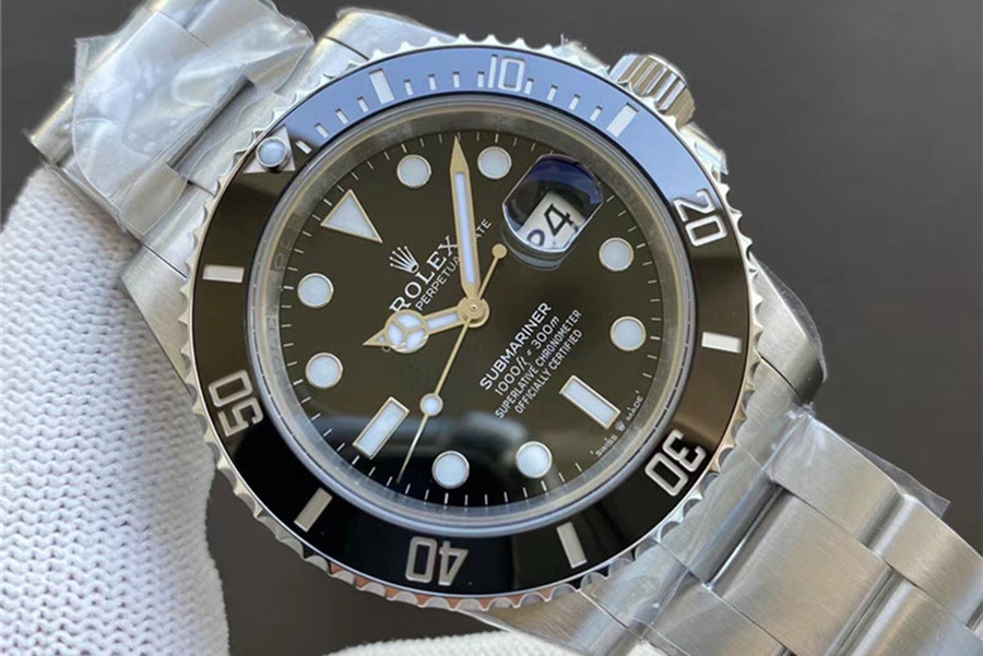 大家好,我是YD小编,今天来聊一下这个40的黑鬼跟41黑鬼的外观整体区别。如果两个就是放在一起。整体直径的大小肉眼还是不太大的,就是肉眼感官你不会感觉到这个会大特别多,基本给我看来也就差不多。所以说这一个大小的话区别不大。然后唯一一点就是在外观上可以区分的地方就是六点钟这个位置了。41三代水鬼的六点钟会有一个皇冠logo的标识在表盘里,40的是没有的这就是唯一一点区别,就是在表盘上面的一个区别。(朋友圈:13967023)