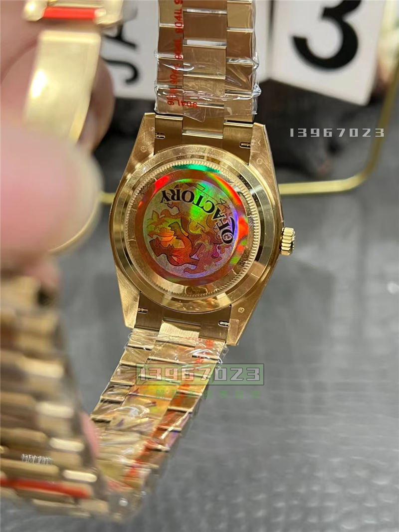 这个大几百就是十多克的一个克重,然后包括表面的一个陶瓷管。然后细节方面的话,Q5版本得QF做这个也做了这么久了,细节方面的话一直都是行内比较认可的,还是行内比较认可的。哪怕现在说这个RC的黑冰糖出来,但是QF这个出货人是不断出的一个状态。包括它的一个调色,整体的一个调色也是做的特别不错的,调的是18K当金的一个颜色。QF工厂的这个调色,我也是一直在说,它的调色是调的比较正的一家QF跟RC,无非就是这两家工厂。