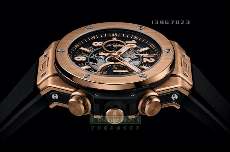 这次登场的两款Big Bang皇金手表,再次把材质放在舞台中央,皇金(King Gold)向来是宇舶的招牌技术,它不是一般黄色金的调性,而是一种更深、更暖、更雾面的特别金色,宇舶在合金中加入铂金,使颜色变得饱满且沉稳,这种色泽在光线下会微微浮现雾光,既带有金属的华丽感,又呈现一种压低亮度的精致气质,非常适合Big Bang那种具体量感的设计。(朋友圈:13967023)
