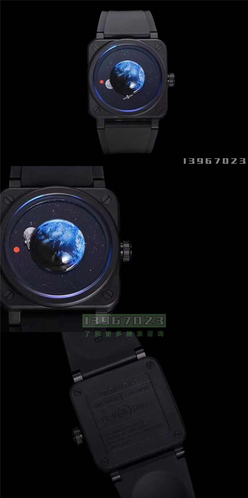 大家好,我是YD小编,这个表虽然正面没有任何的logo,但是外方内圆的飞机仪表盘样式的设计就能看出这个是什么品牌了。老表友们估计一看就知道了,这就是柏莱士这个平替版本是M+产出的原装型号BR-03,工价不到4个W限量999枚。这块表理论上就是一个大方针的设计,但是看上去又不太像打三针,因为镜面内部利用了3D打印技术,做出了地球的样式,把指针给遮盖住了,这个地球图案是在镜面上面的,看起来还是非常的立体的,侧着看还是能看到指针转动的样子,转动的小卫星是秒针,月球是分针,红色的火星则是时针,表盘是蓝色砂金石材料,表现出深空宇宙的感觉,整体的设计已经达到大气层之上。(朋友圈:13967023)