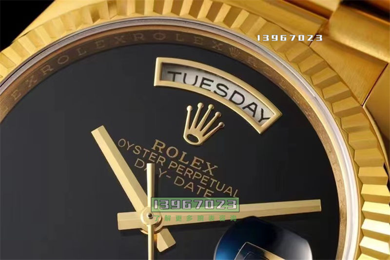 总体而言这款表特色在于黑色表盘无任何刻度,仅在12点位置设星期窗、3点位置设日历窗,整体设计简约,采用金色大三针风格。适合细手腕佩戴,粗手腕可能不太合适。GM工厂的产品在细节处理上表现出色,与其它工厂产品相比,更加精准对版,如表盘金色处理和日历窗色彩。
