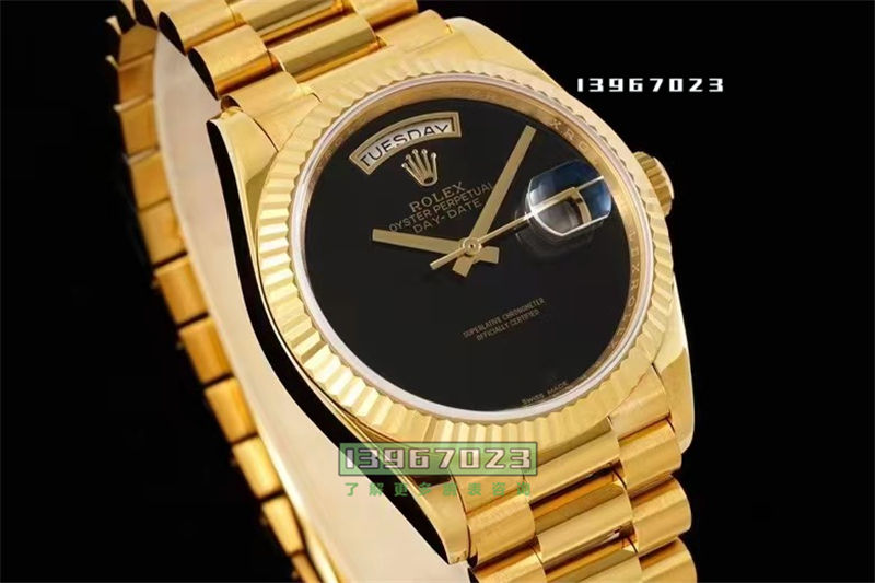 大家好,我是YD小编,今天给大家带来一款36mm的无字天书,来自一个GM工厂,也是目前全网的一个天花板。然后为什么这块表叫无字天书呢?大家其实从它的盘面就可以看出来,它的一个盘面是一整块黑面,没有任何的一个刻度。条丁以及这个数字是整个盘面只有12点钟的一个星期开窗,以及三点钟的日历开窗。整个表它的就是一个金色,然后很简约的一种大三针的风格。但是这种个人感觉戴上手也是挺挺不错的。但是这个36的1个表镜就比较适合手腕小的兄弟。(朋友圈:88309260)