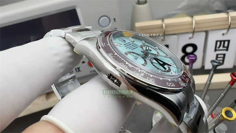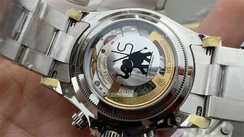 大家好,我是YD小编,今天的主角就是这枚VS厂4131机芯冰蓝迪V3配重版。这块表和前两天的白金灰迪是一样的,都是VS厂最新版的配重迪通拿配重方案依然是钢皮包钨钢内胆。整表重量有176.8克,重量稍微比白金灰迪的轻了一点点。最主要的原因就是这个底盖,大家看一下底盖是透底的,所以说重量会稍微轻一点点。(朋友圈:13967023)