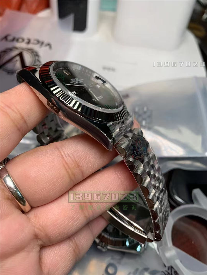 机芯依然还是这个27株的一个丹东的3235机芯。两个机芯都是一样的,打磨的话也是目前市面上做的最好的一个打磨,这些字体都是做的很舒服的,跟VS的工艺都是一样的,都是做的很漂亮的,机身整体的一个打磨都是很规整的。