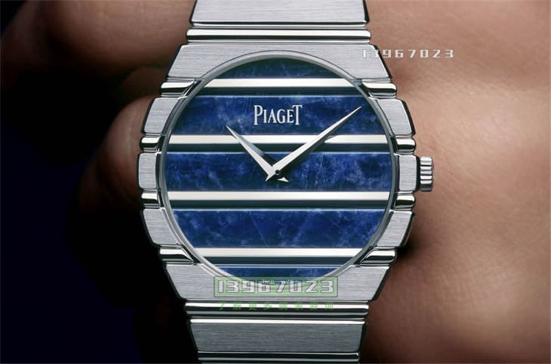 ▲Polo 79以方钠石制作面盘,流动纹理搭配简约设计突显天然矿石美感。