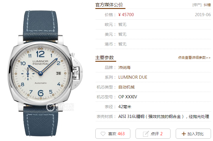 2016年,著名钟表品牌沛纳海推出了LUMINOR DUE系列腕表,一改以往的粗犷、大气的设计风格,以纤薄、可塑性高的腕表系列特质给人留下深刻印象。2018年,首次以38毫米的小尺寸面向钟表爱好者。令这份腕上的大气顿时也变得“精致”起来。官方型号:PAM00906