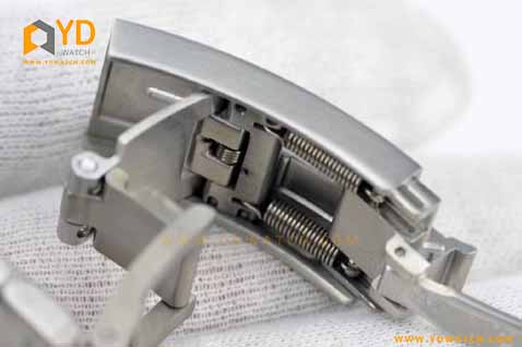 XF厂帝舵钛土豆黑色战斧腕表表扣部位可以自由调整长度,表扣部位做了开口的设计,这样的设计十分的少见,可以自由调整表带的长度,非常的别致。表带为钛金属材质,同正品一致的表扣弹簧微调,适合金属过敏体质!