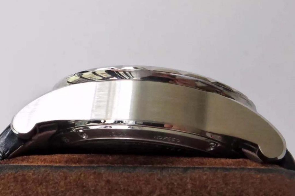ZF厂罗杰杜彼圆桌骑士复刻腕表侧边经过拉丝打磨,中间表冠还受两侧护肩的保护,与中层表壳融为一体的护肩为避免表冠受损又增加了一层保障。顺滑处理的表耳线条,不仅在造型上让整体更为和谐,在佩戴时也避免了表耳线条不合理造成的不适感。